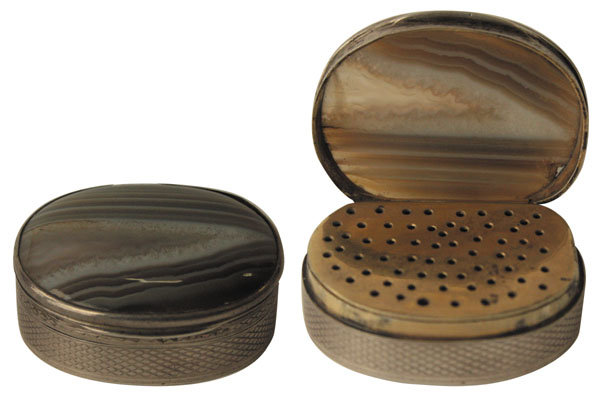 LOTTO 33 – Periodo GIORGIO III, di John Linnit & William Atkinson, London, 1812-13. Esemplare ovale (cm. 3,9) della centellinata produzione londinese di vinaigrettes, che venivano prodotte principalmente a Birmingham, con il coperchio in pietra dura traslucida, i lati e la base con minute incisioni geometriche. Piccola mancanza sul bordo della pietra. Base d’asta euro 125. OFFRI IN TEMPO REALE.